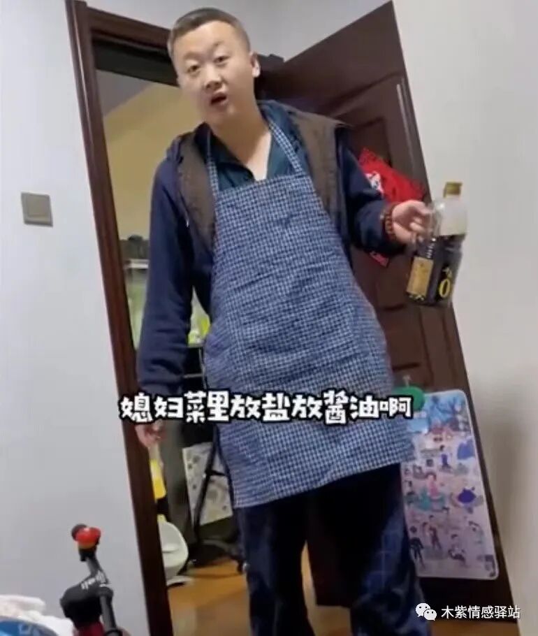 换了男子做饭,对这些做饭流程和所需要的食材,一点也不熟悉,所以,他时不时拿着各种食材和锅碗进屋里,向妻子请教。