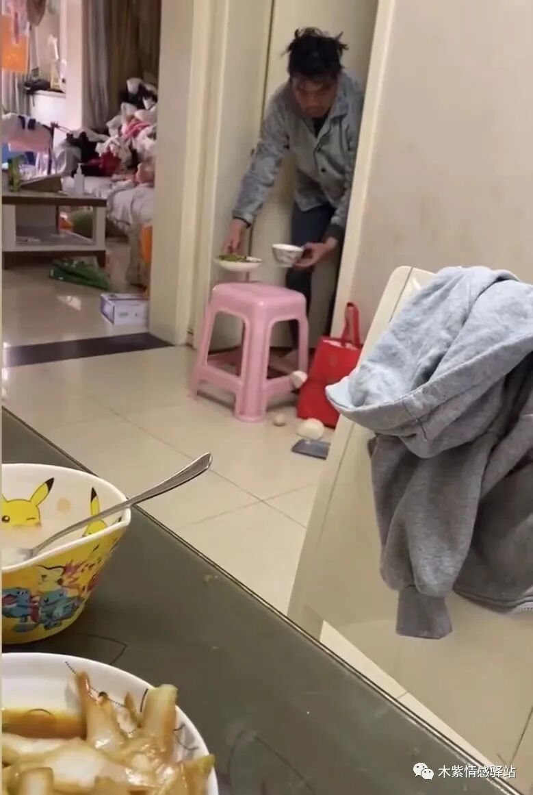 妻子表示,自从老公阳了后,为了防止孩子们被感染,所以就在卧室门口放了一把凳子作为“警戒线”,一日三餐准备好了就给他放在凳子上,让他过来自己取,卧室就是他的活动区域。
