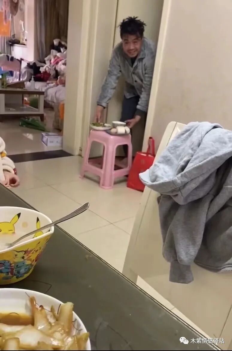 男子站在门口,蹑手蹑脚,鬼鬼祟祟的模样,望着老婆,眼神里满是迷茫和无助,让人看了又好笑又忍不住心酸。