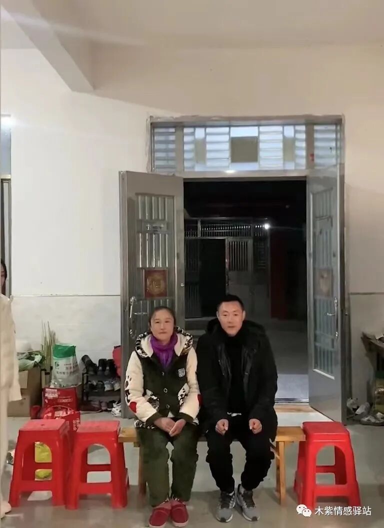 大门前面摆了一条竹木长凳,两端还有红色的高凳,一对中年夫妻坐在中间位置,接下来,两个人非常默契地拍起了巴掌,随着掌声落地,他们又做出来向两边招手的姿势,接下来,神奇的一幕发生了。