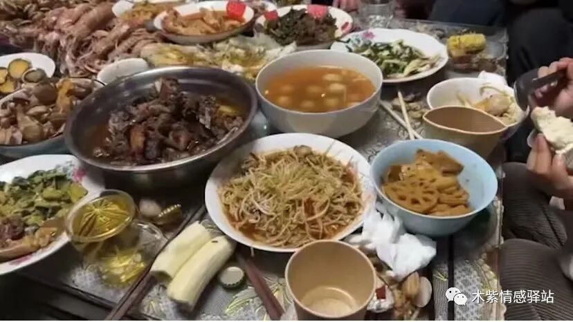 有网友直言:看到拼起来的三张桌子上满满的菜肴,还有一圈坐满的亲人,忽然有一种感动得想哭的感觉。