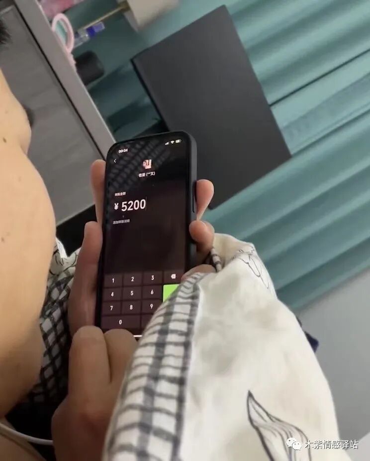 只见男子先是大手一挥,黑色的手机屏幕上立马显示出“5200”四个醒目的大字,妻子欣喜不已,心想,老公真是大方,这下子自己要发财了。