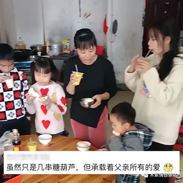 女儿笑着,乖巧地站在父亲旁边,原来,爸爸买了4串糖葫芦,他担心在路上凉了,所以揣进怀里暖起来。他小心翼翼地拿掉外面的塑料袋,然后给孩子们每人分了一根,最后一串,他亲手递给了妻子。