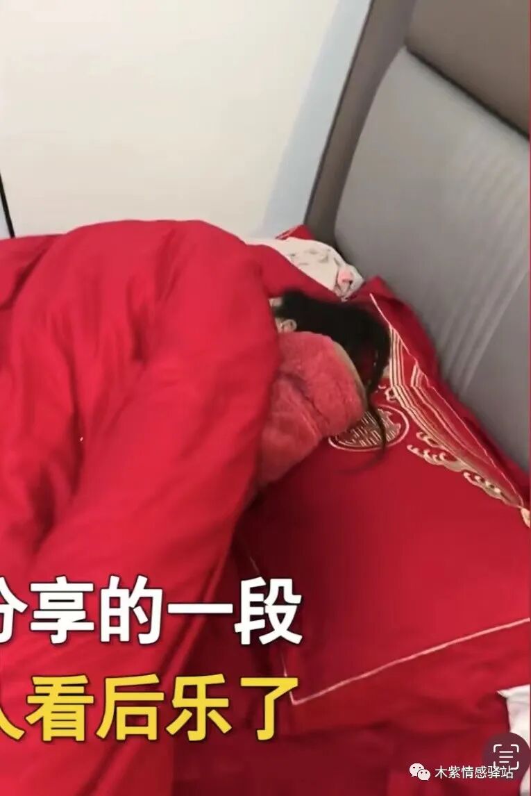 坐标河南周口,有网友分享了一段有趣的短视频,画面中,男子打开卧室房门,悄悄地走进房间里,卧室床上铺着大红的被面,一看就是新婚的房间,一名年轻女子,蒙着头,正在呼呼大睡。