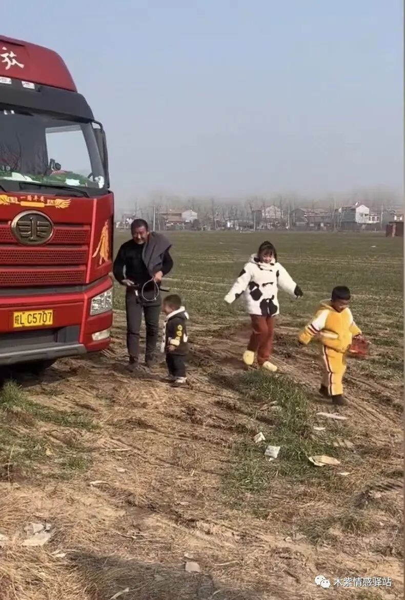 她和丈夫生育了三个孩子,一个女儿两个儿子,孩子们拿着玩具,踉踉跄跄地走向跑车回来的爸爸和爷爷,爷爷把货车稳稳地停在了大路旁边的麦地里,随后,年轻的爸爸从车上先行走了下来。