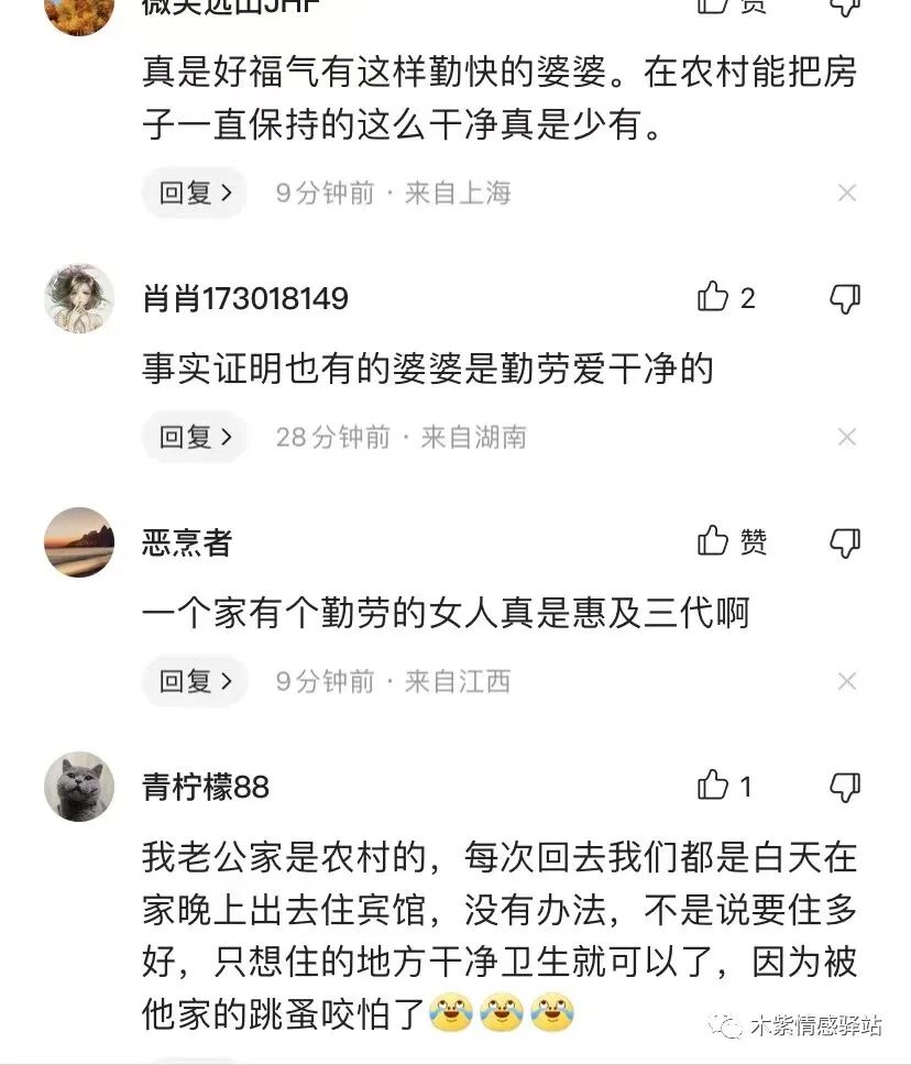 不过也有不少网友吐槽自家婆婆不爱干净,有网友说我们回去老家家具上都是灰尘,厕所马桶都是黑黄色,油烟机几年不擦,所以很少回去了,回老家住不习惯。