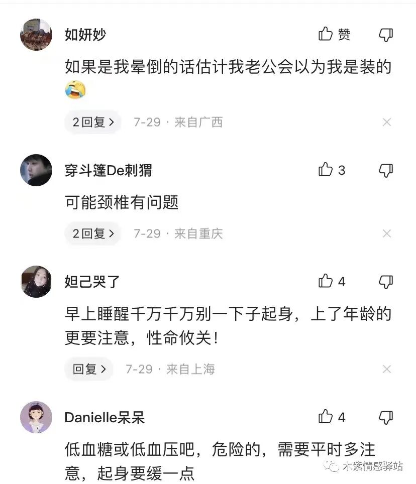 有网友说,其实这样 的情况很常见,尤其是早上睡醒的时候,千万不能一下子就起身,上了年龄的人更要注意,搞不好会有生命危险。