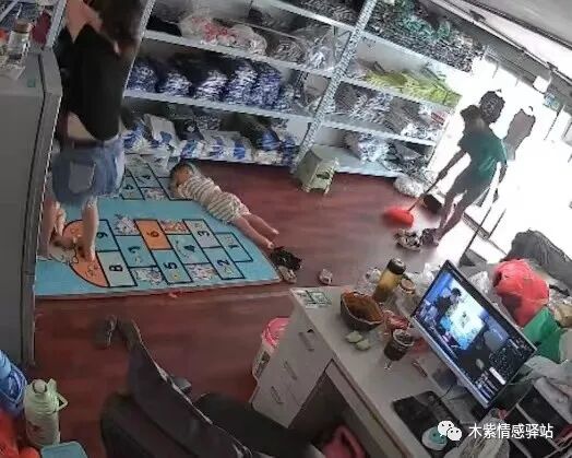 本期素材来源于浙江湖州,这是一处门面房,屋里有两排货架,上面摆满了物品,棕色的木地板上,铺着儿童地垫,一个宝宝在上面躺着睡觉,年轻的妈妈躺在另一侧休息。