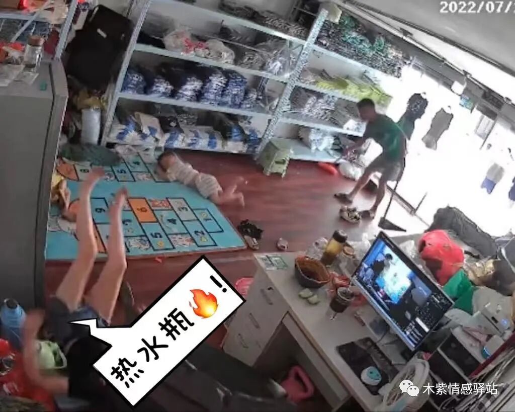 原来,女子摔倒的地方,她身边的位置上放着两个暖瓶,她倒下来的时候,手臂圈住了其中一个暖瓶,暖瓶晃动了几下,值得庆幸的是,暖瓶没有倒下,一旦暖瓶摔碎的话,那么,后果不堪设想。