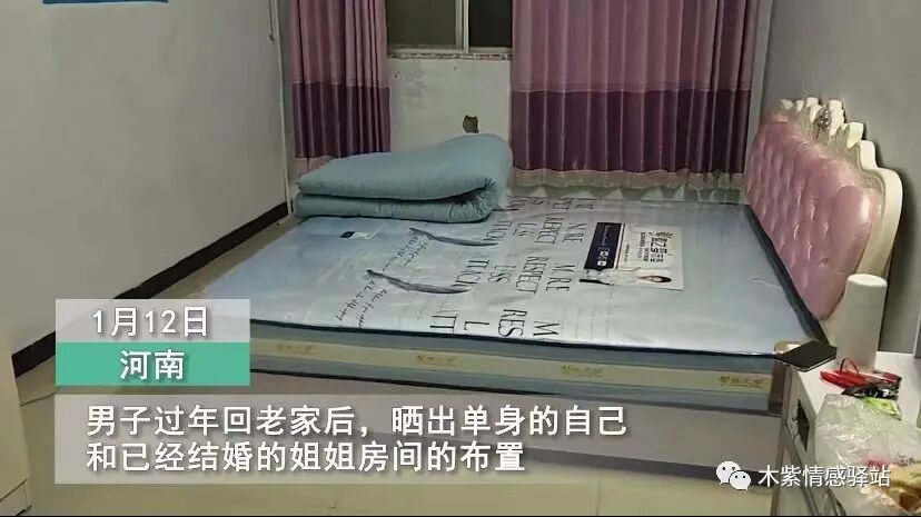 坐标河南某地,有一名男子分享了单身的自己和已婚的姐姐,两个房间的布置。