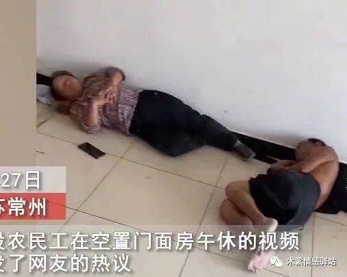 有网友说,我们公司搞基建的临时农民工也是这样,中午不回家,就在公司大门前的阳台下休息午睡,下午可以接着干活。
