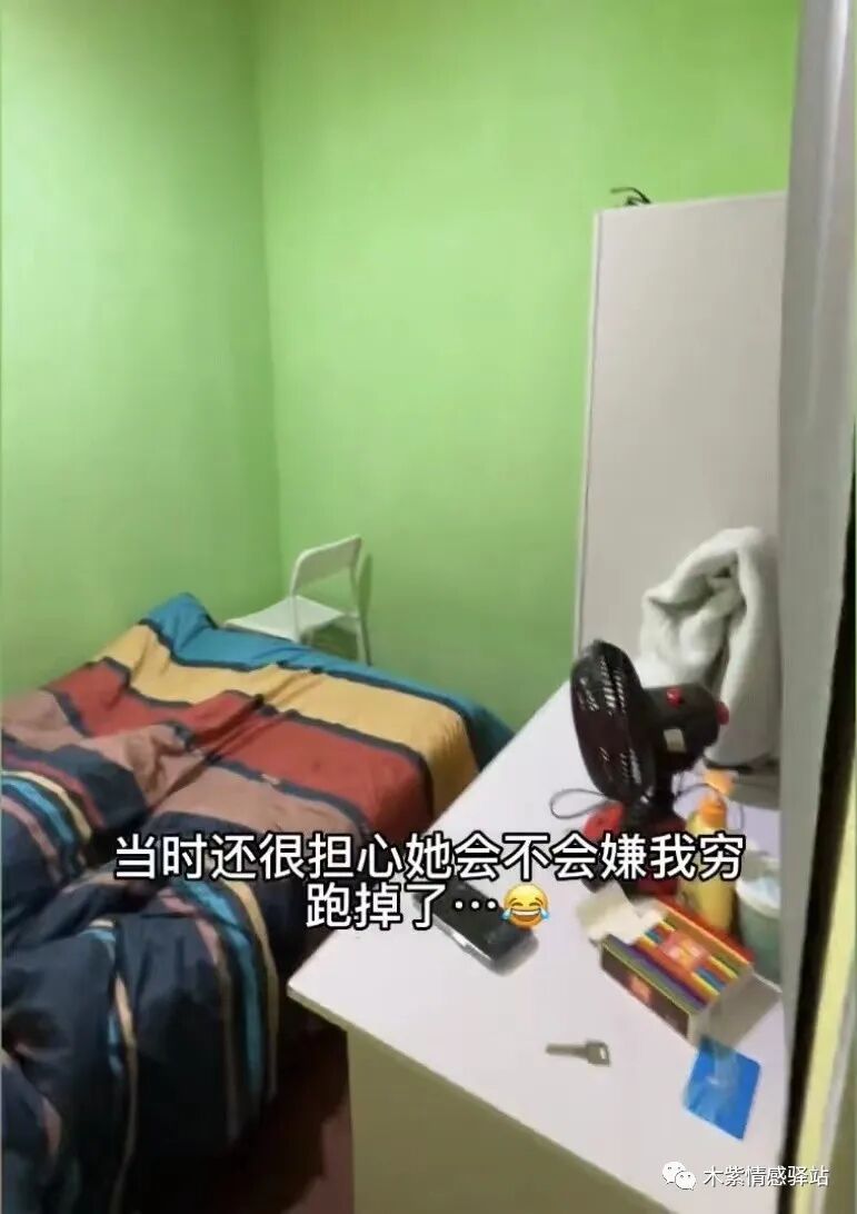 男子满怀感慨地表示:说出来不怕大家笑话,这就是她以前陪我租住的单间,那时候刚毕业,两个人赚钱很少,仅够温饱,没有多余的钱去租大房子,只能租这样的小单间。
