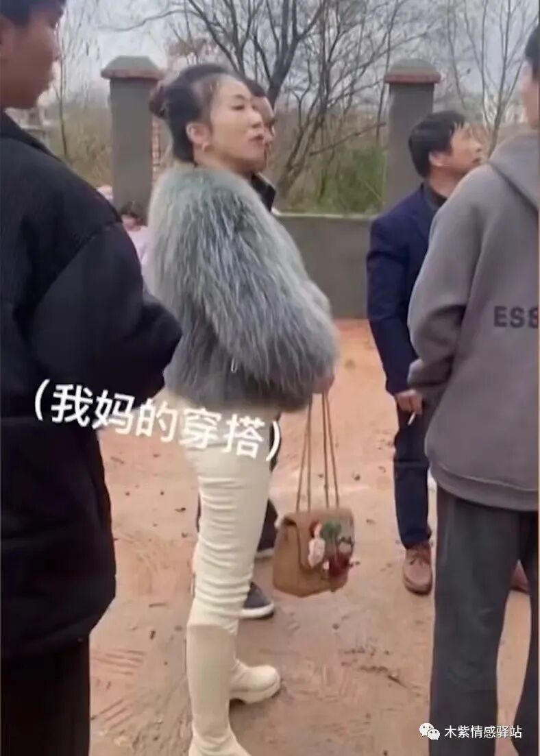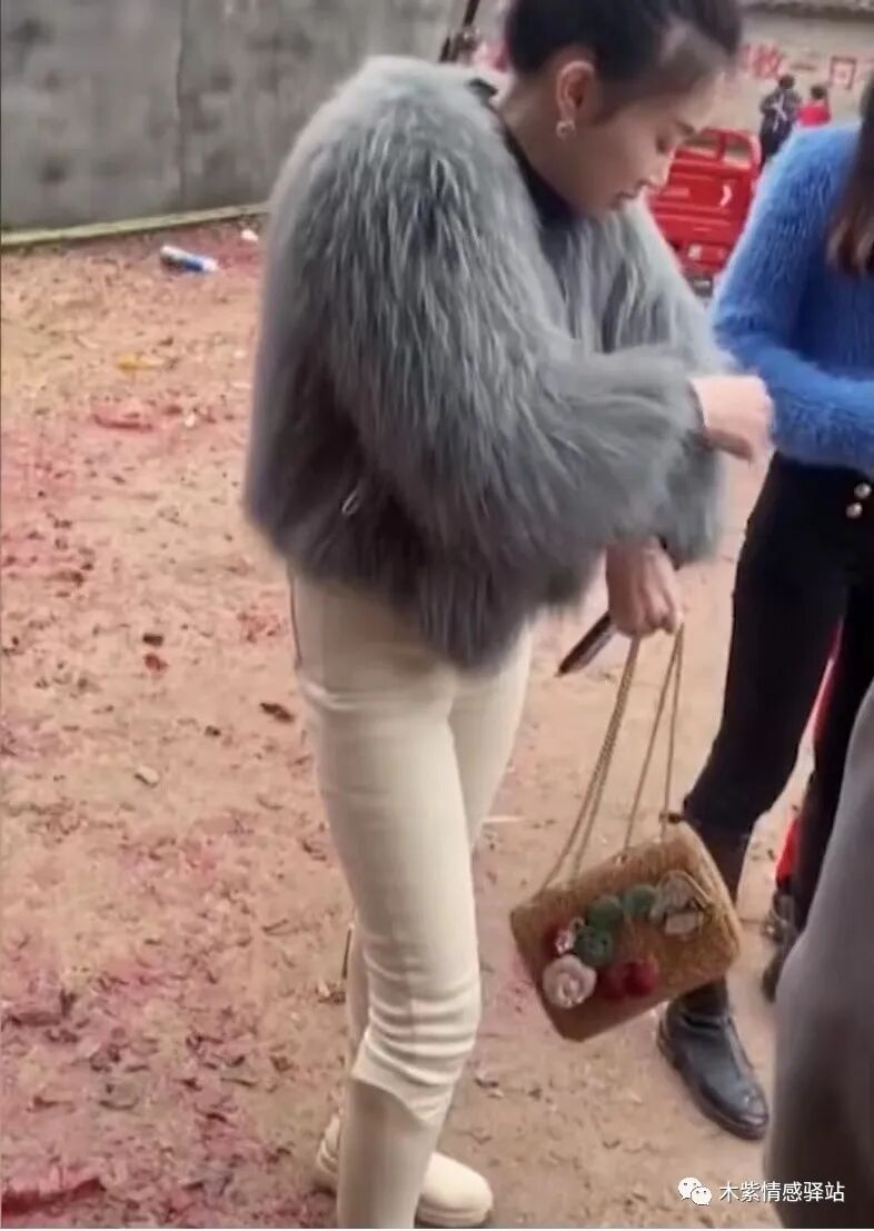 坐标江西抚州,有网友分享了一段对比鲜明的视频,画面中,一名中年女子穿着高档的灰色皮草,挎着精致的复古小包,扎起高高的丸子头,下身搭配米色紧身长裤,合体修身的衣着,把她窈窕的好身材,衬托得一览无余,人显得高挑,又精神又贵气十足。