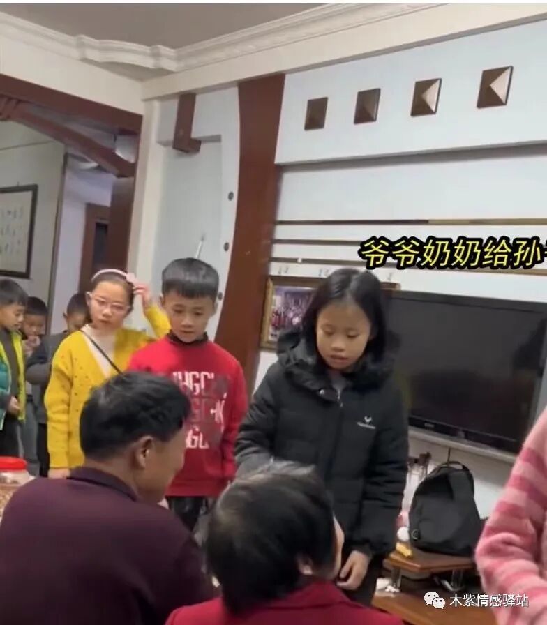原来这是爷爷奶奶给孩子们发压岁钱,过年的时候,孩子们最开心的事情那就是收到大人们发的压岁钱了,有的是几百元,有的是上千元,多少不一样。