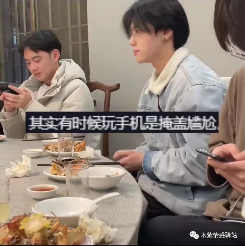 也有网友猜测:是不是三个小伙子都是社恐,谁也不肯先开口破冰,所以就假借玩手机来掩饰尴尬气氛。