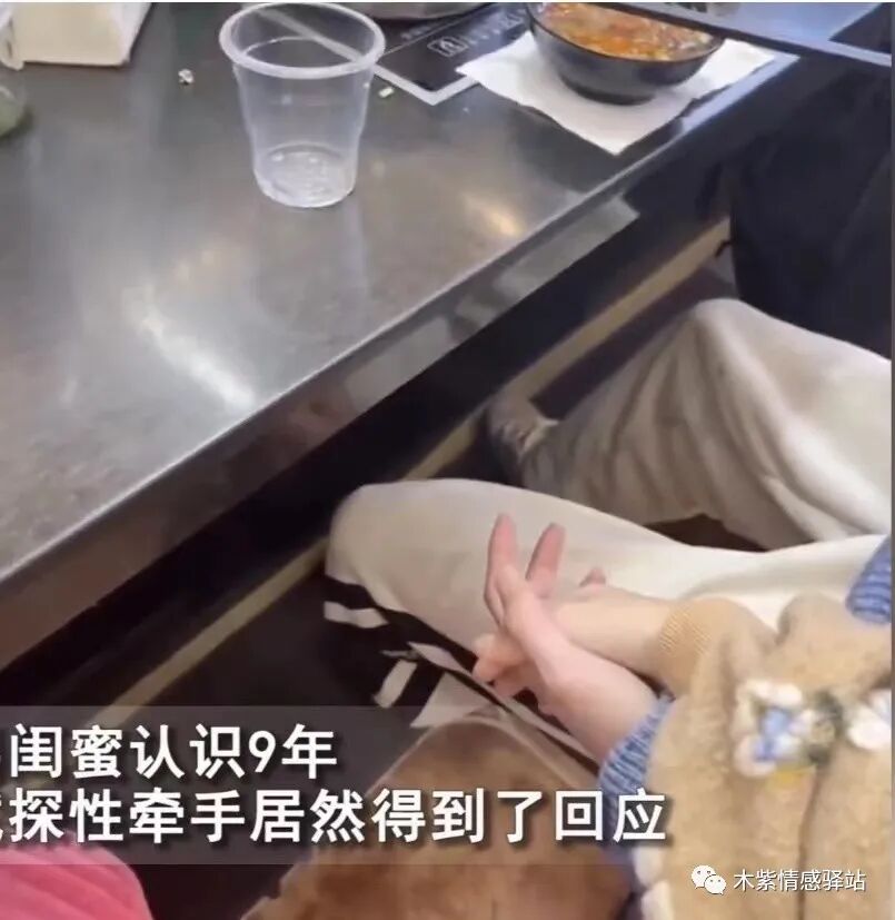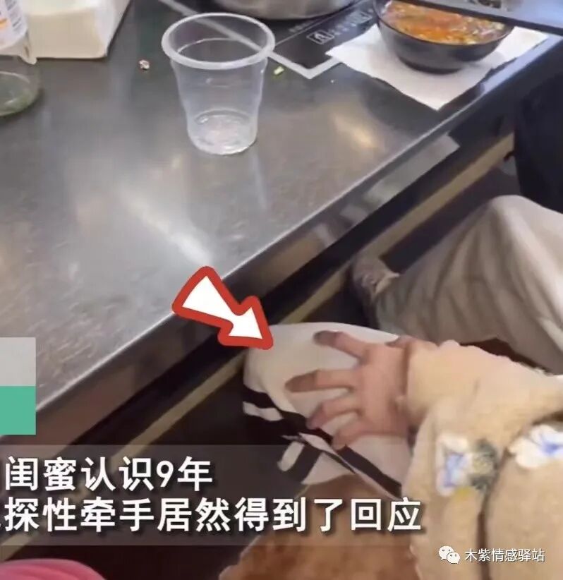 眼看着火锅就要吃完,这顿饭快要结束的时候,女子试探着伸出手,悄悄去握住男闺蜜的手,没想到,对方同样给予了回应。