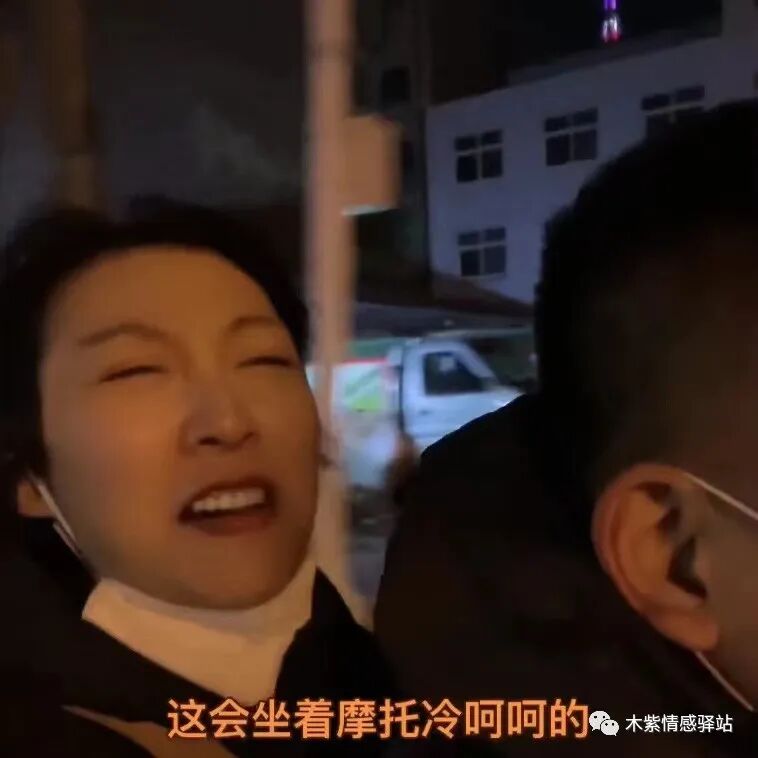 坐在摩托车后座上的女子,顺手摘下白色口罩,忍不住冲着夜空大声喊话:俺老公的前女友,你现在在干什么?你当时为什么不再坚持坚持,你就这么轻易地放弃了俺家老头嘞?