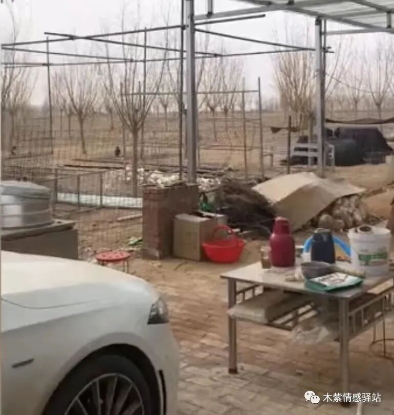 坐标河南南阳,一名男子晒出自家养殖地里的简易房,看得出来,这是一片很宽广的田地,地里没有绿植,略显荒凉,男子说他在这里搞养殖,养了很多土鸡,地头有一片平整的地面,像个小院子,院子里摆着简单的桌椅,他们一家人在这里生活。