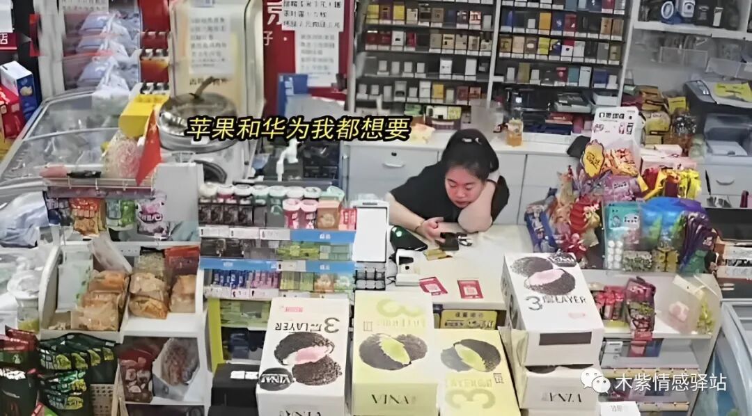 女子却犯愁地说:现在我不知道买哪个好了,我喜欢苹果又喜欢华为,怎么选择啊?我两个都想要。