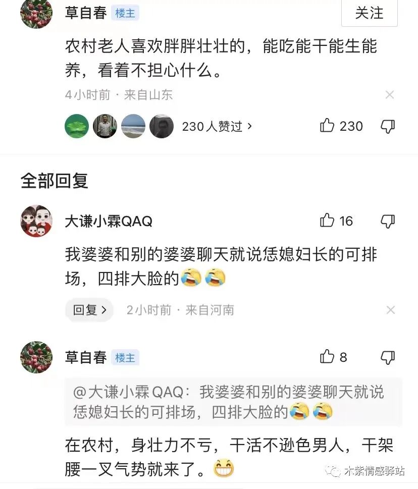 有知情网友说:农村老人都是喜欢胖胖壮壮的媳妇,能吃能干能生能养,看着不担心。