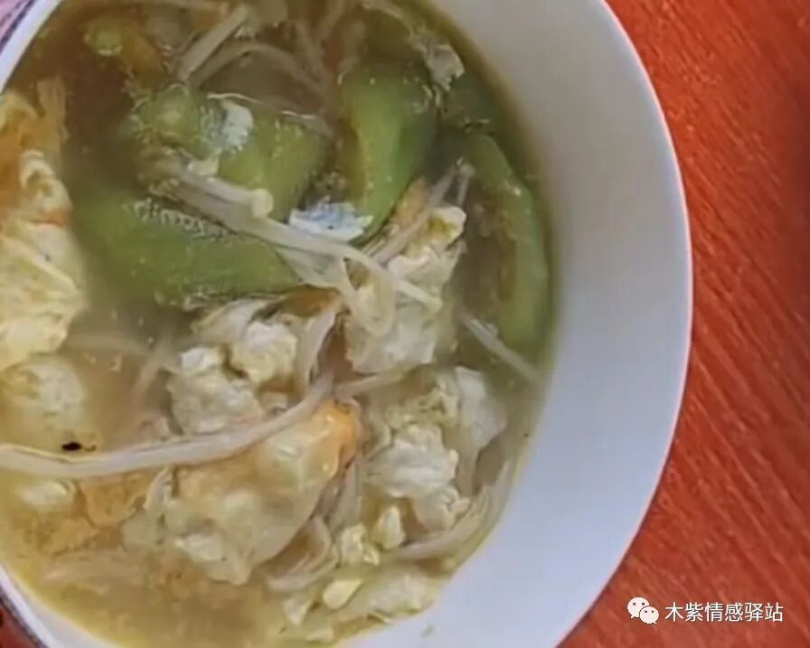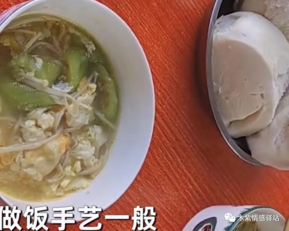 男友爸妈对于女子的到来表现地很淡然,吃饭的时候也很简单,第一顿饭就是丝瓜炒鸡蛋,主食是馒头。