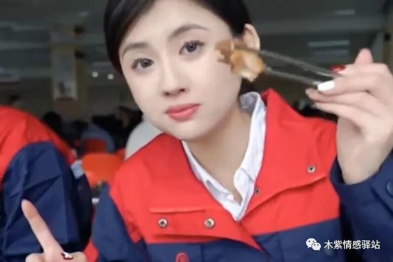 看女子姣好的容貌以及她那沉浸于享受美食的表情,确实非常有诱惑力,许多年轻网友忍不住想要去大厂务工了。