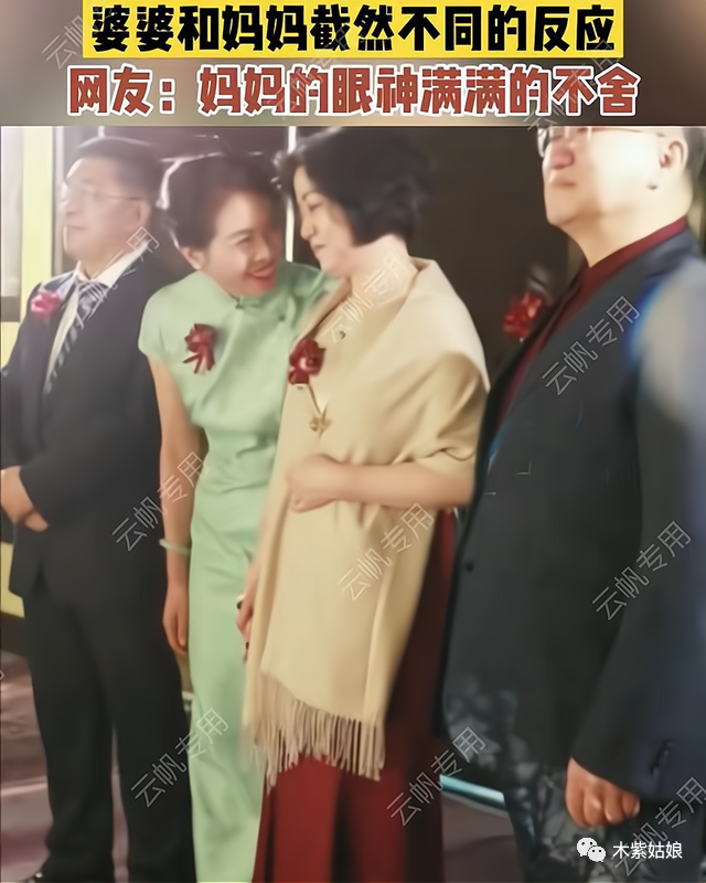 有网友分析的很精辟,她说,一个是添丁进口,一个是养了好多年的女儿给了人家,心情肯定是不一样的,所以说,新郎和公婆要善待每一个儿媳。