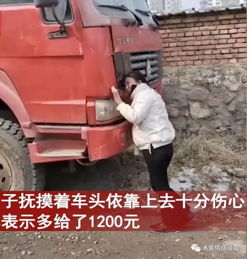 女子趴伏在车头前,双手不停地一遍遍抚摸,就像爱抚去世丈夫的脸庞,她依依不舍的模样,让买主看了也是心酸不已,最后,收车人提出多支付1200元,女子才含泪让他把车开走。