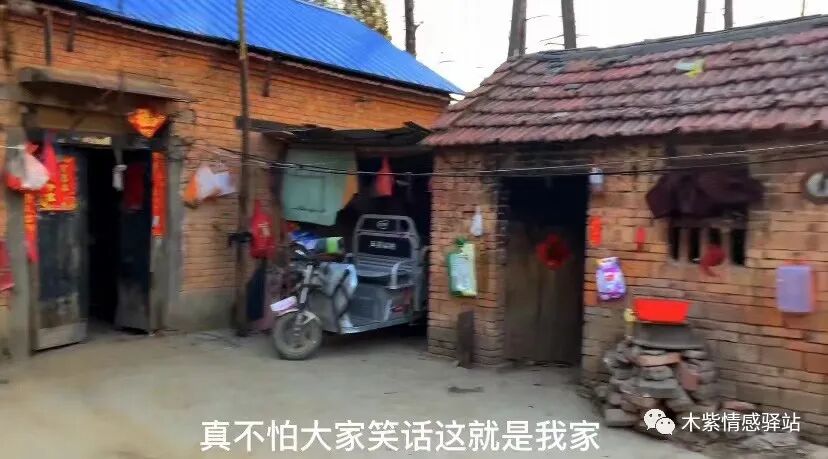 原来,女生家里过的比较穷,从画面中可以看出,这是一处非常简陋,甚至有些破败的农家小院,主房就是三间窄窄的堂屋,混砖结构,屋顶还是简易的蓝色棚子,旁边的厨房还有大门,看起来好像摇摇欲坠的感觉,家里没有值钱的物件,只有一辆蓝色的机动三轮车,停放在院子 角落。
