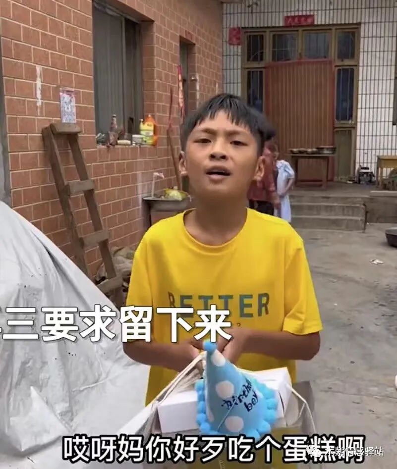 妈妈要走了,孩子很是舍不得,他多么希望继母和弟弟妹妹留下来,能陪他过一个欢乐开心的生日,一块儿陪他吹蜡烛,享用美食。