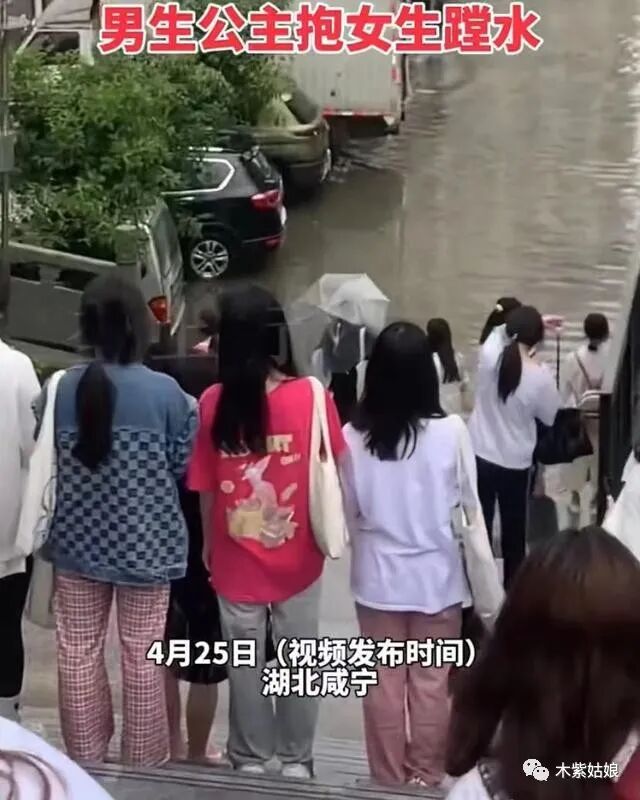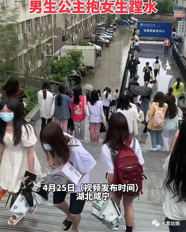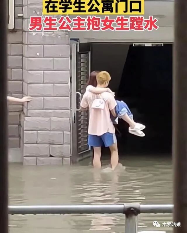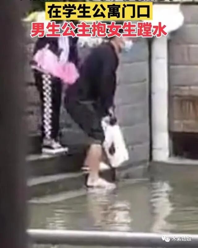 其中有男生回应说,本人在这里,虽然她穿着拖鞋,但是水很臭,所以我还是决定抱着她过去了。