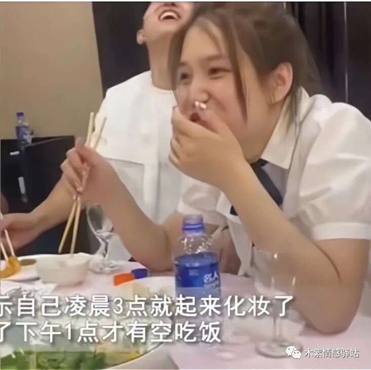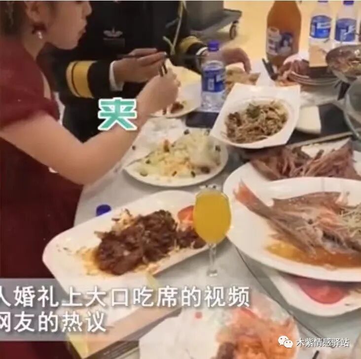 新娘听了后,不好意思地捂嘴笑了起来,她表示自己凌晨3点就起来化妆了,一直忙到下午1点才有空吃饭,实在是顾不上了。说完,她和新郎又安心地继续埋头吃饭。