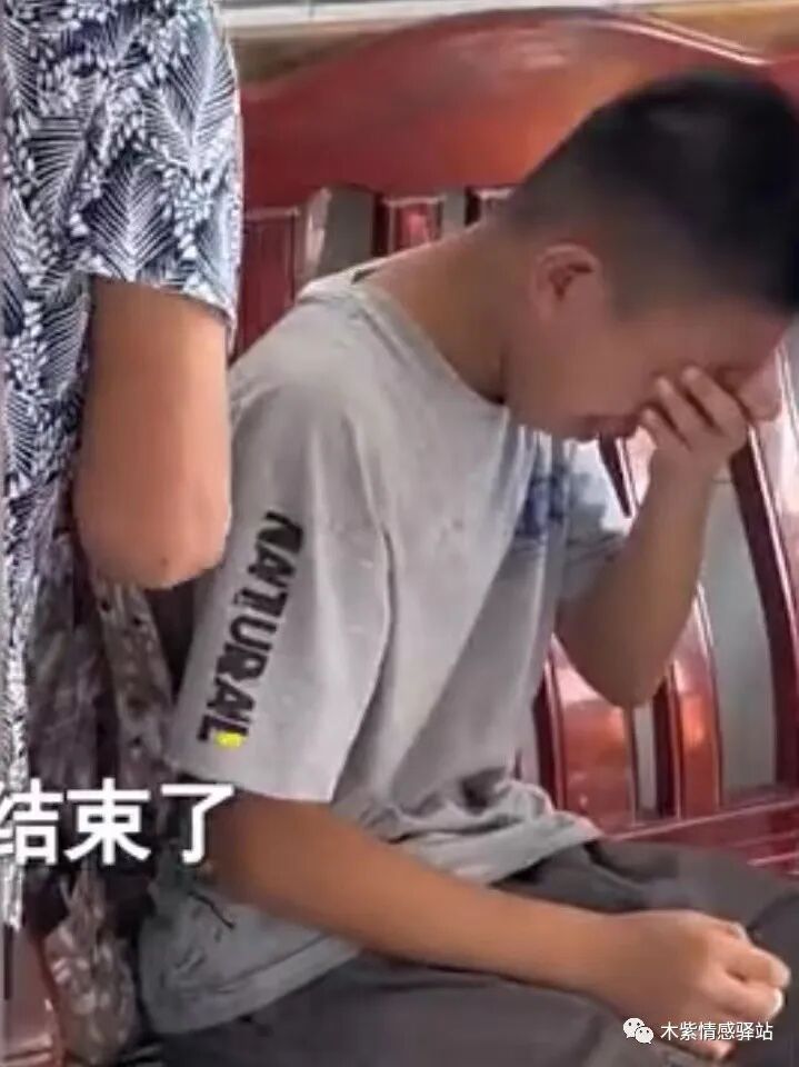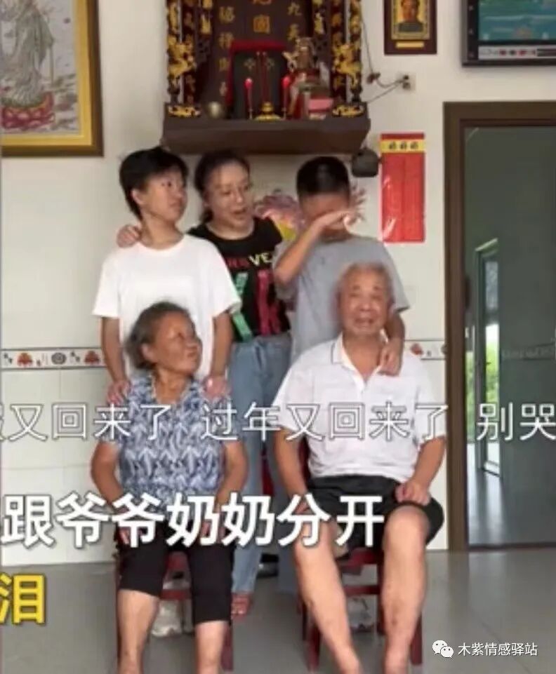 可是,爷爷身后的少年,这时突然开始默默地流泪,他的情绪越来越激动,忍不住伤心抽泣,妈妈发现了孩子的异常表现,拍着他的肩膀,好心安慰他:不要难过,寒假还会回来的,到时候过年又可以见到爷爷奶奶了。