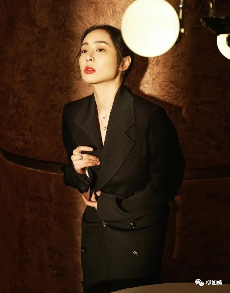那天晚上,她身穿黑色深V西装,大背头一梳有女版周润发那味儿了,甚至性格女王倪妮都忍不住夸赞道: