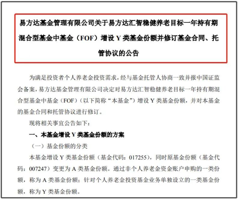 据悉,此次设立的Y类基金份额就是指针对个人养老金投资基金业务单独设立的一类基金份额,也可简称“Y类份额”,投资人可根据个人养老规划安排,使用个人养老金资金购买本类别基金份额。