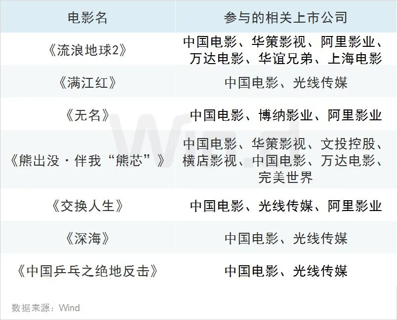 公开资料显示,以《流浪地球2》为例,该电影的制作、出品、发行方均有中国电影的身影,联合发行方有天津猫眼、上海淘票票等公司,联合出品方更是囊括阿里巴巴影业、融创未来文化娱乐、万达影视、上海华策电影、抖音文化、华谊兄弟、上海电影、保利影业、英皇电影、新浪影视、珠江电影集团等一众影视娱乐行业巨头。