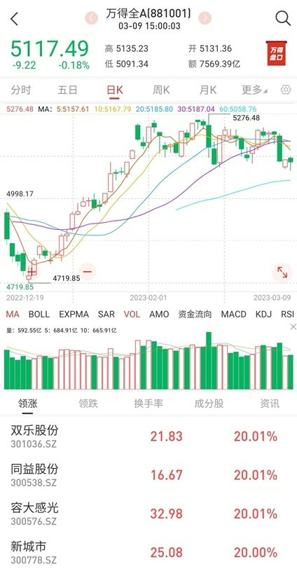3月9日周四,上证指数和深成指收盘小幅下探0.22%和0.16%。个股上涨2347家,下跌2543家,下跌个股稍多,差距不大,涨跌比接近1:1,Wind赚钱效应指标显示偏好。