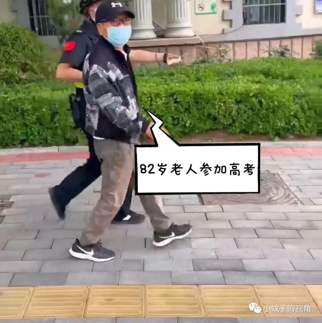 这位背都站不直的老人一出场就引起了众人的注意,保安一开始还以为他是某位考生的爷爷,却没想到老人拿出准考证,证明自己也是来参加高考的。
