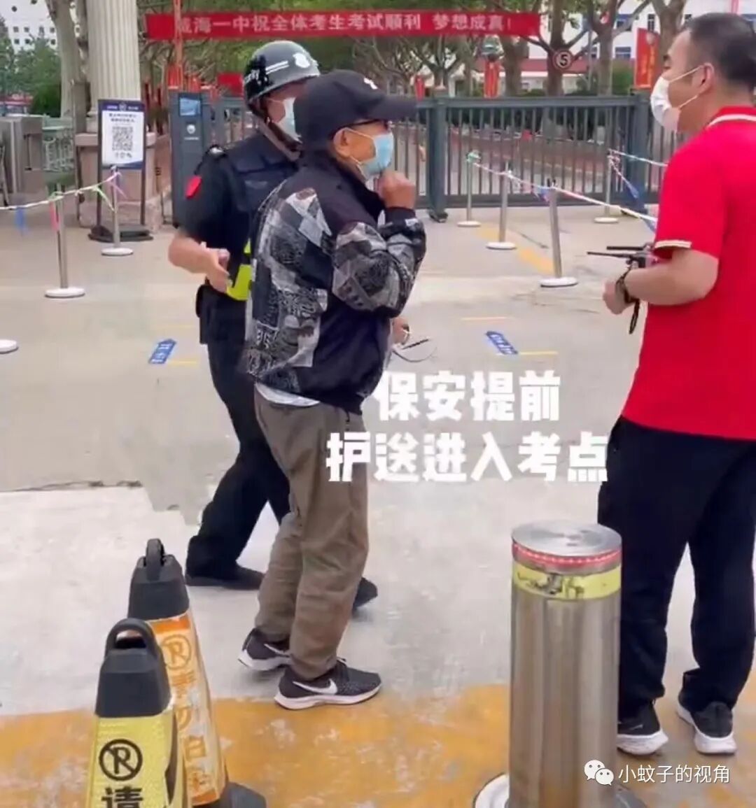 保安得知老人的年龄,害怕老人路上出现意外,或者找不到考场,亲自护送老人提前进入考场。