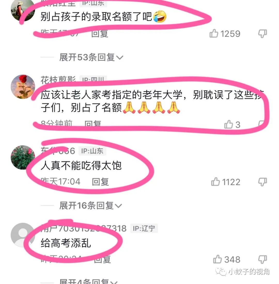 也有人出主意说:应该让老人家考指定的老年大学,别耽误了这些孩子们,别占了名额。