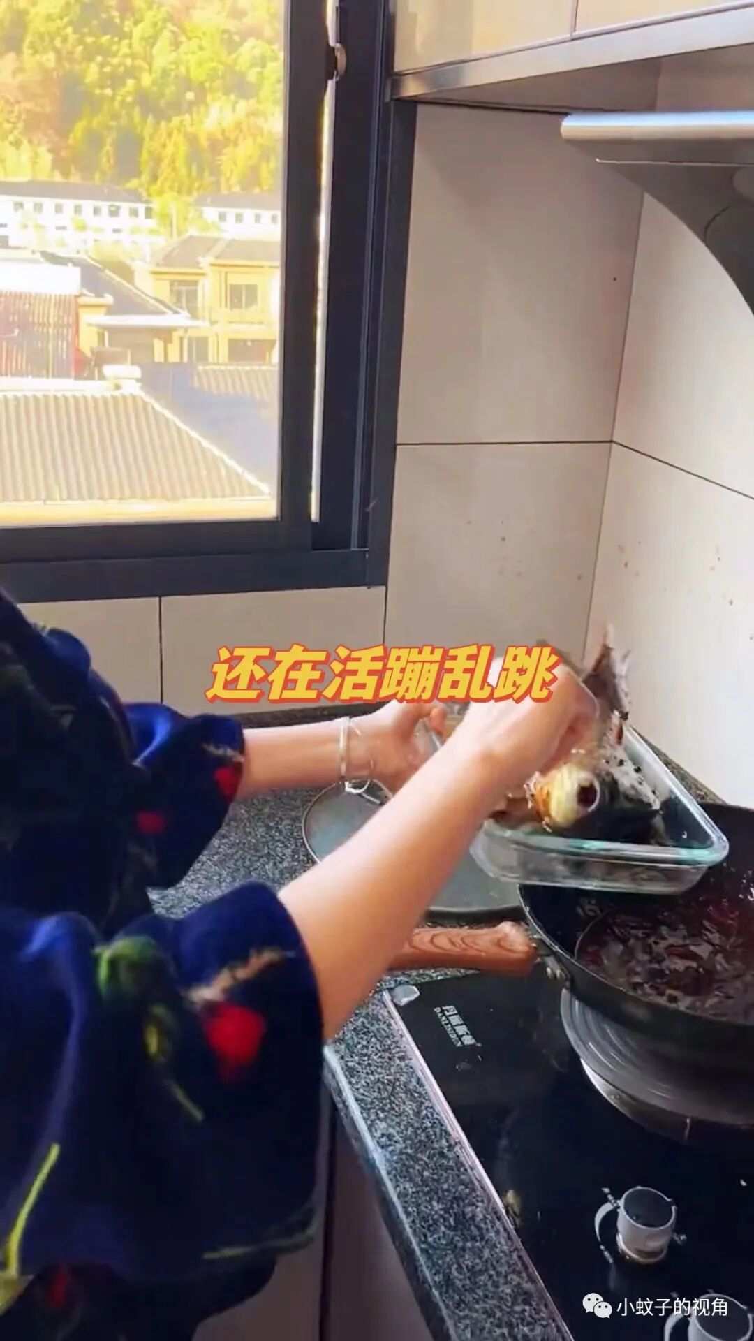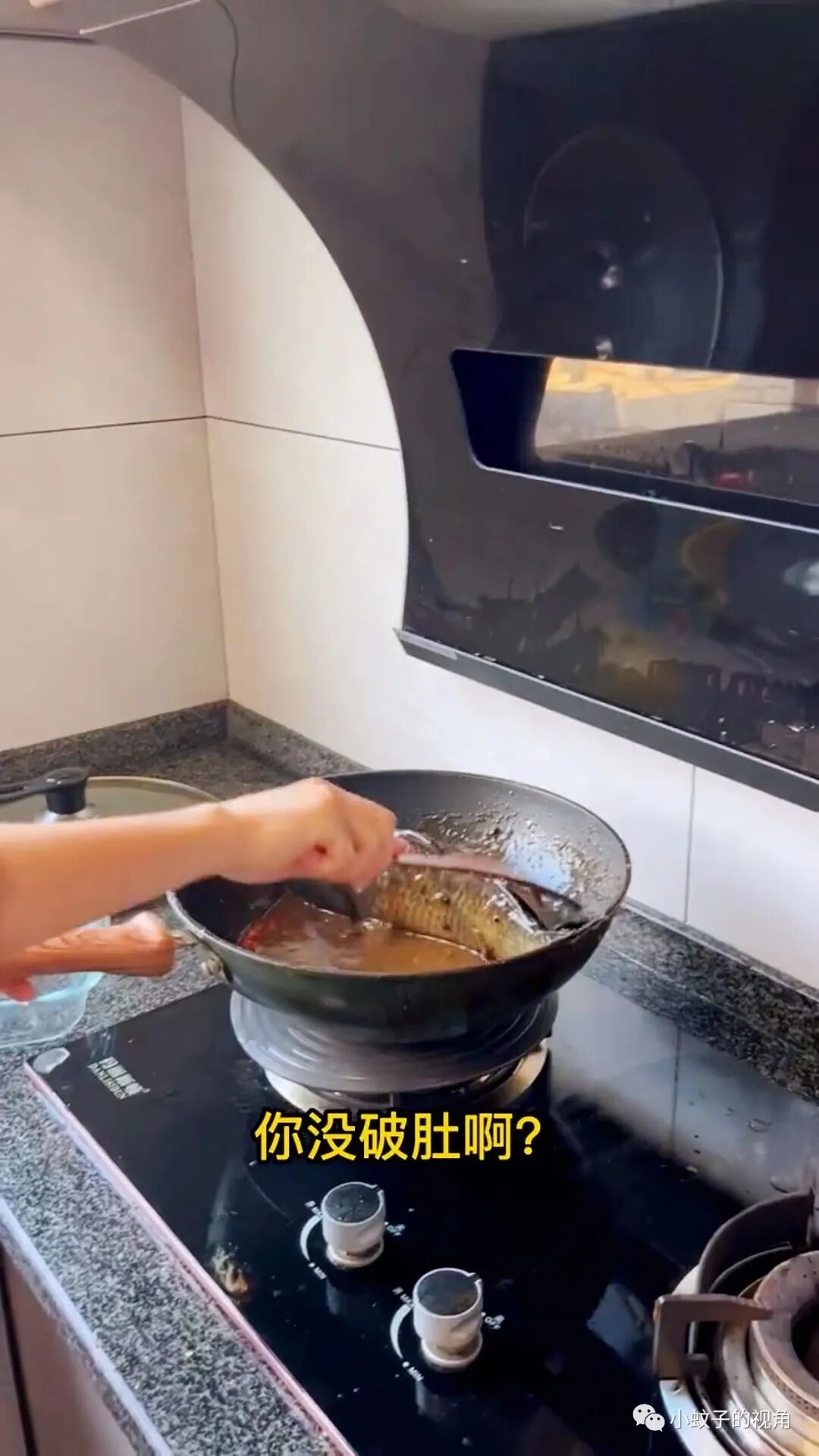 女孩跑进厨房一看,闺蜜刚把鱼放进锅里,鱼还在活蹦乱跳呢!
