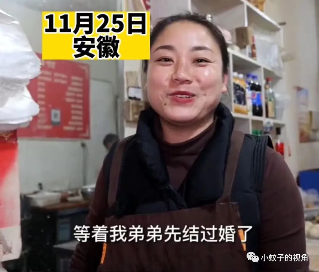 就像安徽的这名女子一样,33岁的她依然未嫁,辛苦卖饼12年,赚钱给弟弟买房买车,自称:等弟弟结婚后再考虑自己。