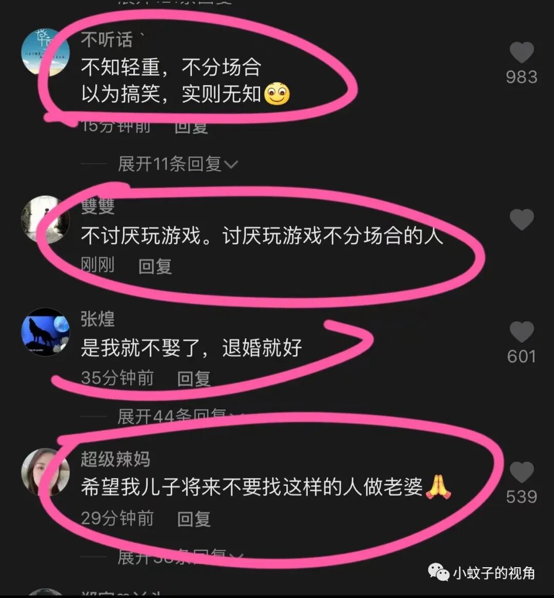 也有网友为儿子的将来考虑,说:希望我儿子将来不要找这样的人做老婆。