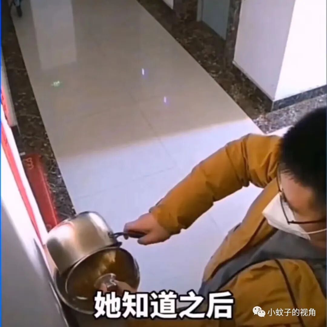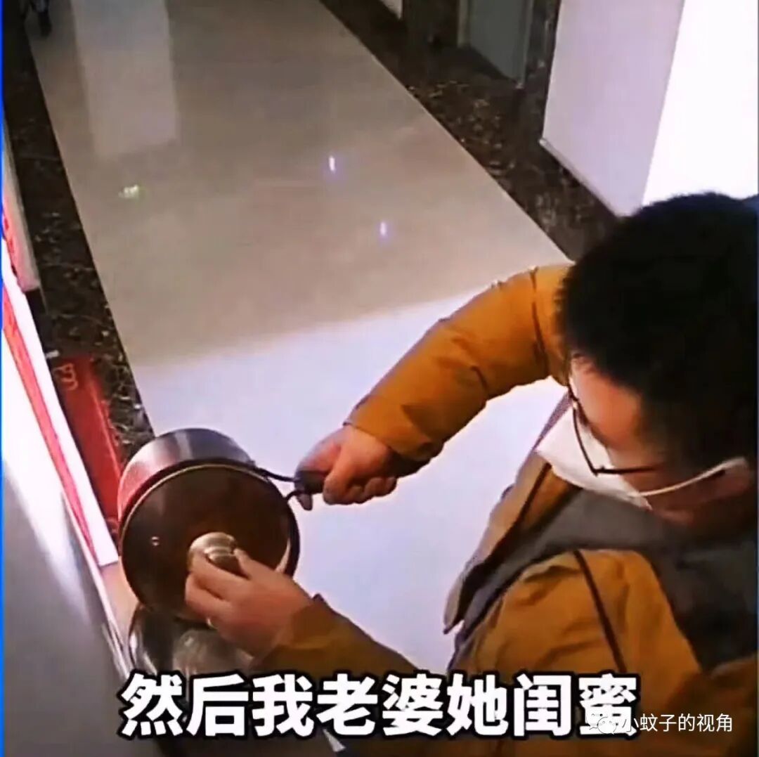 于是,每当闺蜜做好了饭菜,给他们通知后,他们都会在门口放一个小盆子。闺蜜让她老公拿着小锅来给送饭。