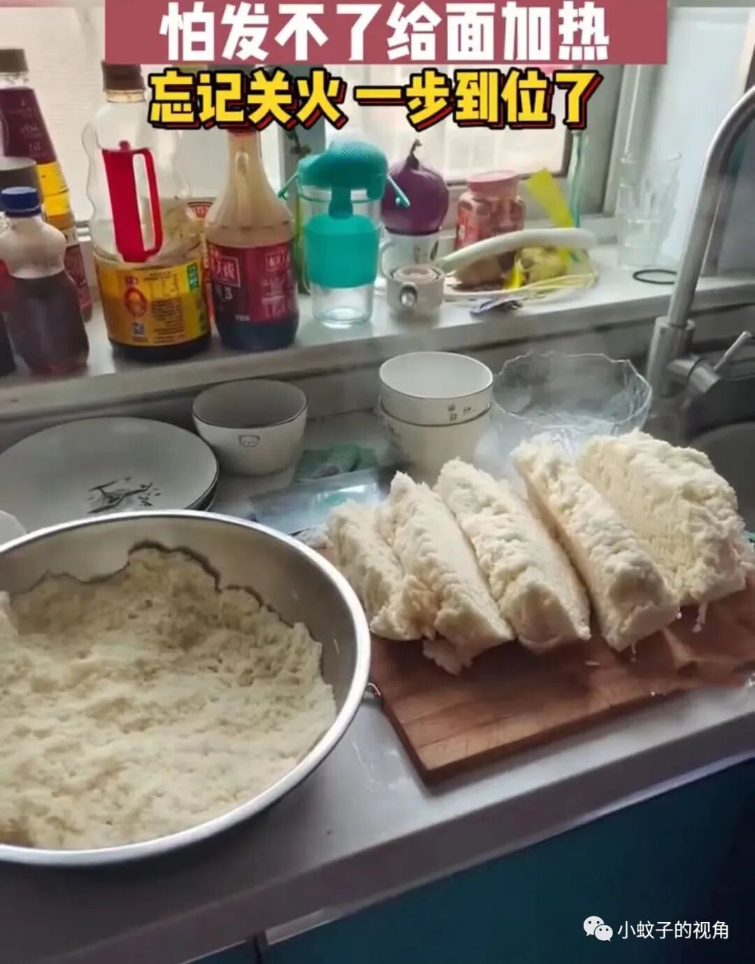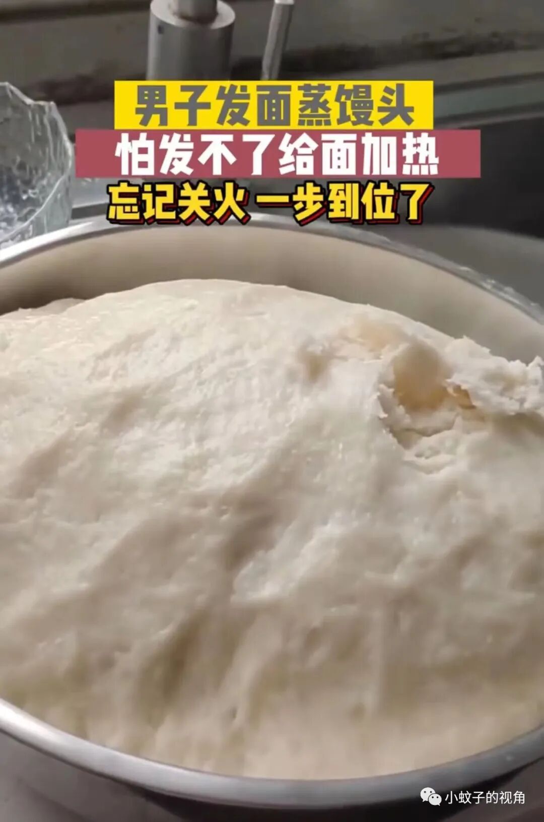 等他想起来的时候再去关火,由于时间太久,等他打开锅盖后令他哭笑不得:活好的面团已经被蒸熟了!从面团直接变成一大盆馒头!