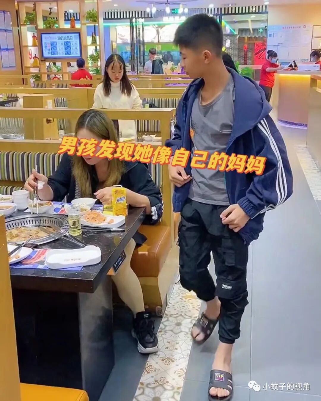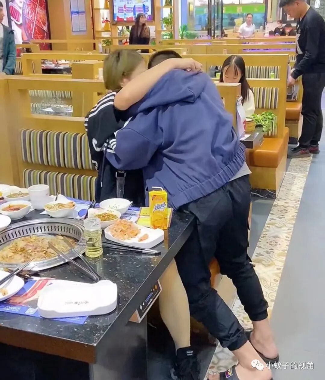 如果你在饭店吃饭,突然走过来一个男孩要你抱抱他,你会是什么反应?