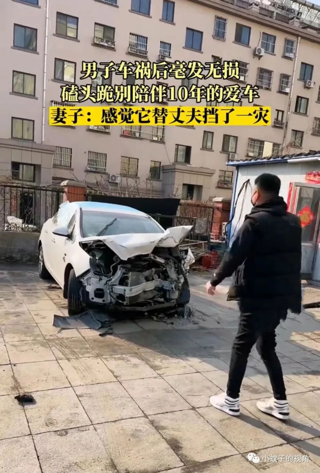 就像这位男子一样,开了十年的车子因为车祸要报废,他跪在地上对着爱车磕头致谢:谢谢你救了我!车祸这么严重,我都毫发无伤。