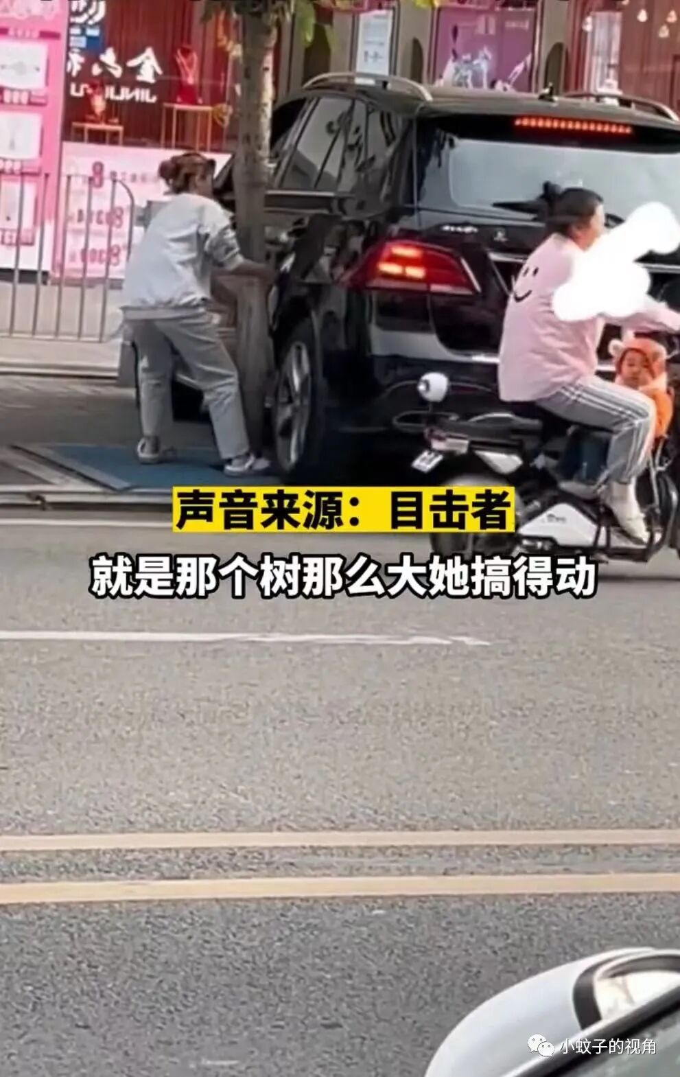目击者说,这就是女司机的思维,常识上是没有问题,关键是这棵树也不小,她能挪得动吗?也不知道她的驾照事怎么拿到的!看上去有点搞笑,也有点无语。