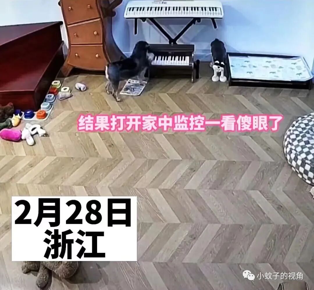 原来女子家里还养着一条小狗,小狗可能是看有人经常弹琴,自己也学会了。等夜深人静大家都睡着了,小狗竟然偷偷跑去弹琴!