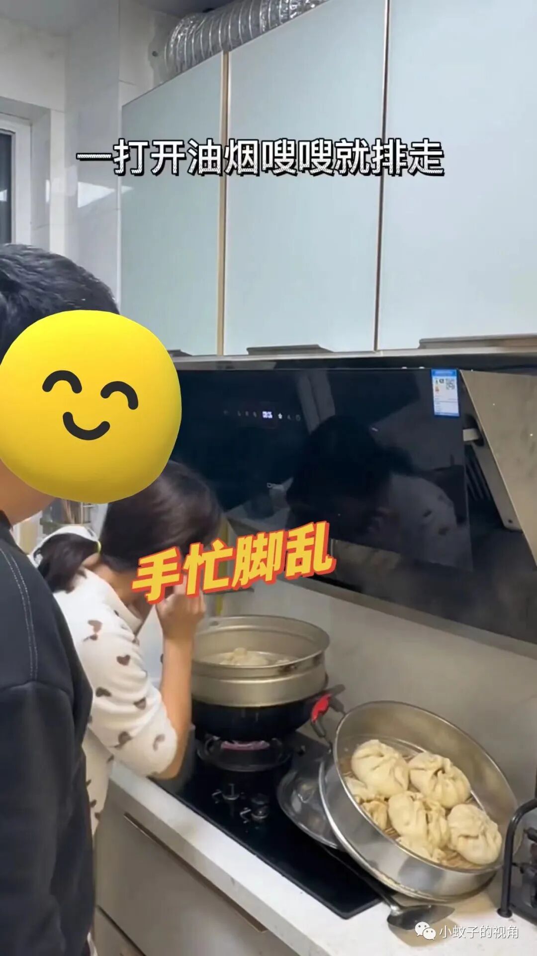 男子知道妻子的水平,懒得去厨房掺和,孩子可不一样,兴冲冲地跑去记录妈妈这勇敢的一刻。